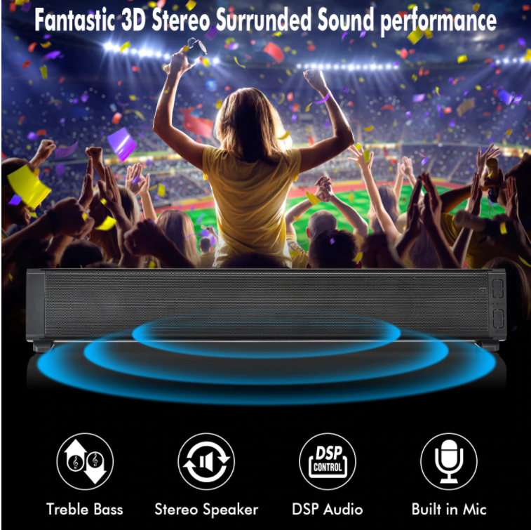 20W Portable Soundbar Wireless Speaker Bluetooth 5.0 Column HiFi Subwoofer 3D Stereo Sound with Remote Control Support TF AUX
