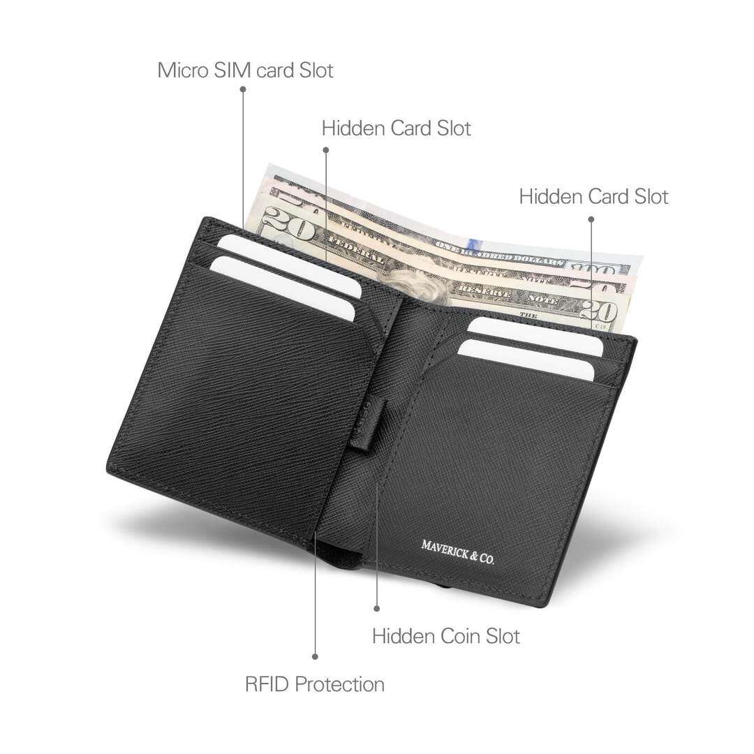 Maverick & Co. - Cosmopolitan RFID Protected Slim Pocket Saffiano Leather Unisex Wallet Black