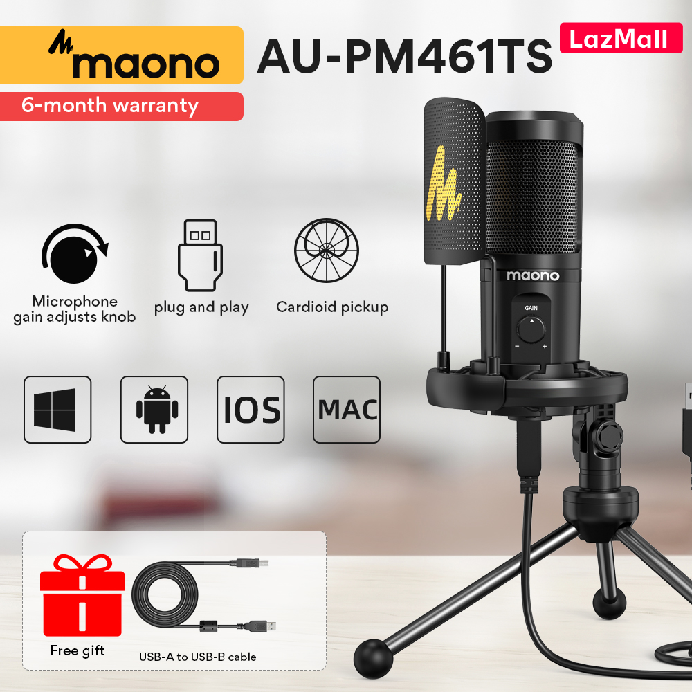 MAONO AU-PM461TR USB Microphone Condenser Recording PC Mic for Online Teaching Meeting Livestreaming Gaming With Tripod Stand