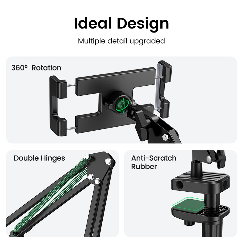 UGREEN Tablet Mount Lazy Holder for 4"-12.9" Devices Adjustable Long Arm Clamp for iPad Air Pro Mini, Redmi Note 10, iPhone 12 Pro Max, Samsung Galaxy S20, Note 20, Nintendo Switch, Max 12.9 Inch Cell