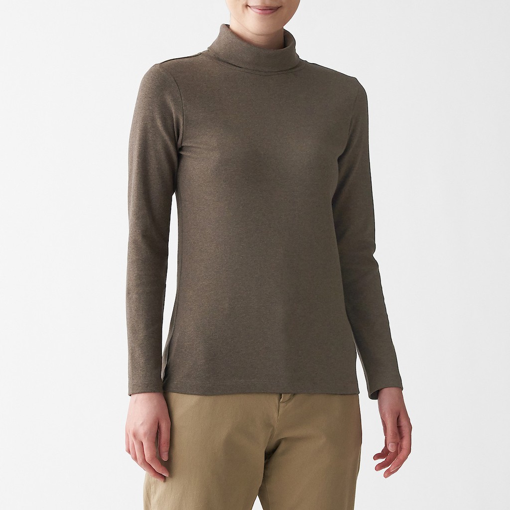 MUJI Stretch Rib Knit Turtle Neck Long Sleeve T-Shirt