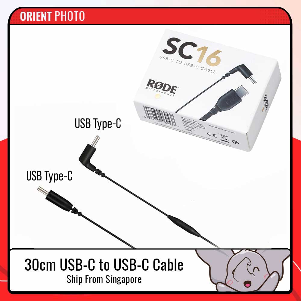 RODE SC16 Straight USB Type-C to Right-Angle USB Type-C Cable (11.8") for Rode Videomic NTG Wireless GO 2