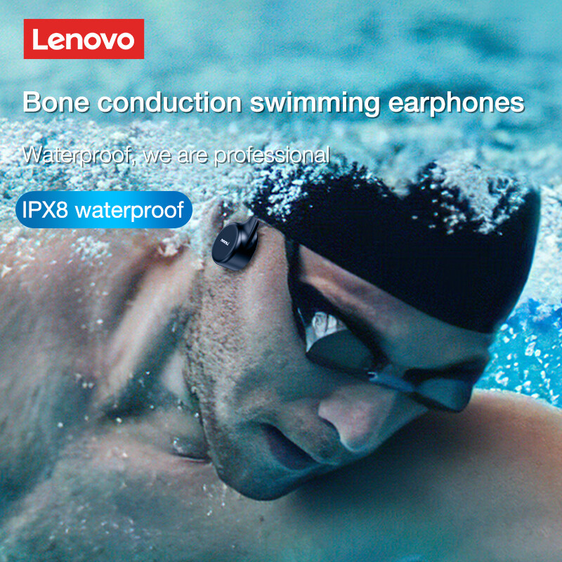Lenovo X5 Bone Conduction Headphone IPX8 Waterproof Swimming Diving Earphone With Micphone Built-in Storage 8G MP3 Music Player