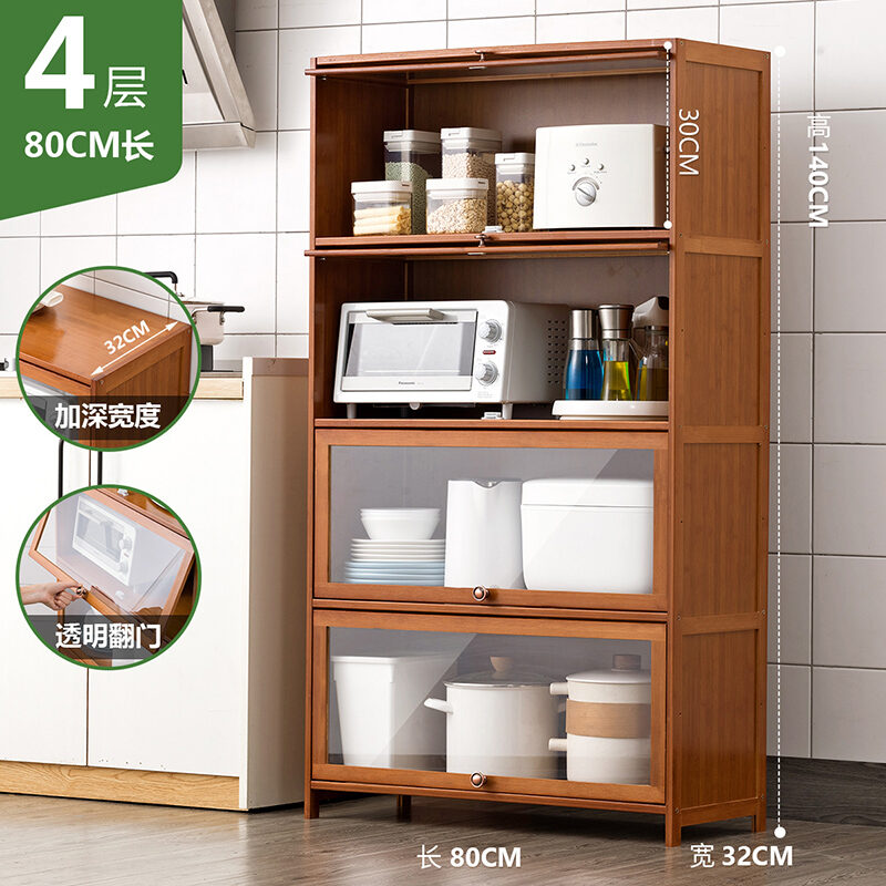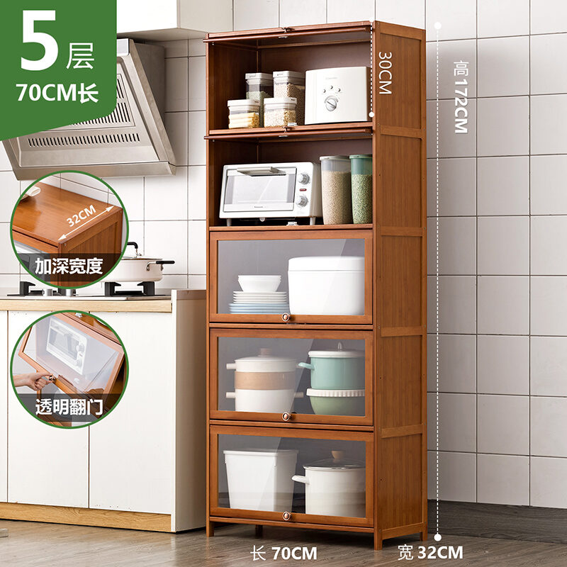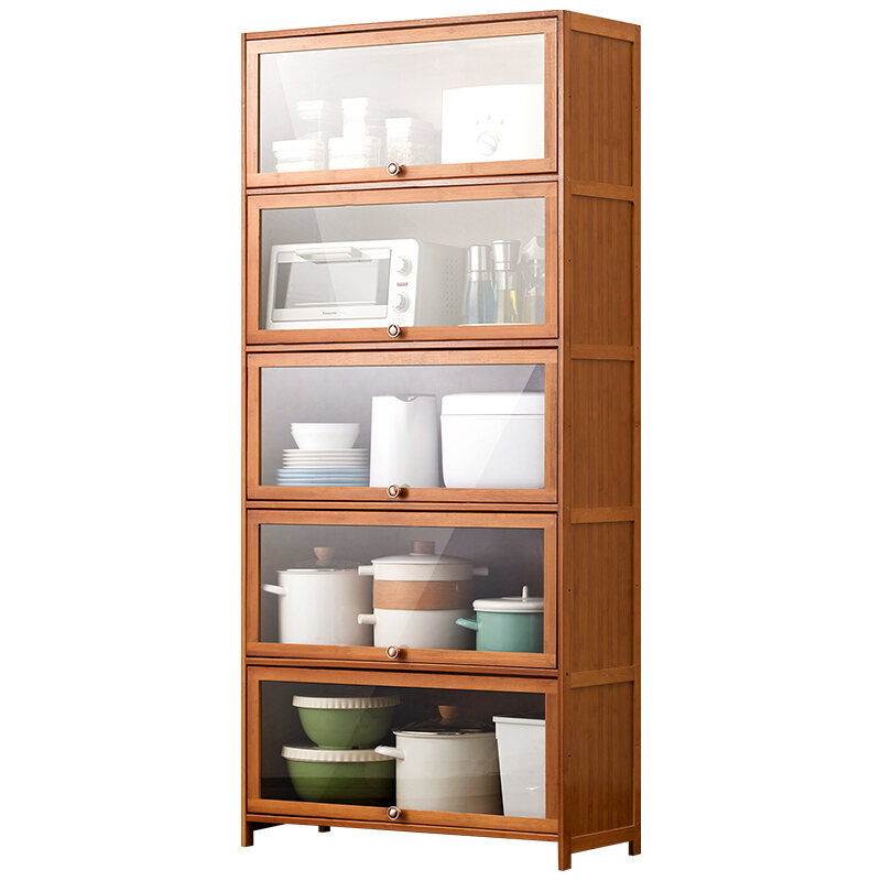 Kitchen Supplies Storage Cabinet Household Complete Floor Multi-Layer Multi-Functional Storage Rack with Door Locker Bookshelf Wood