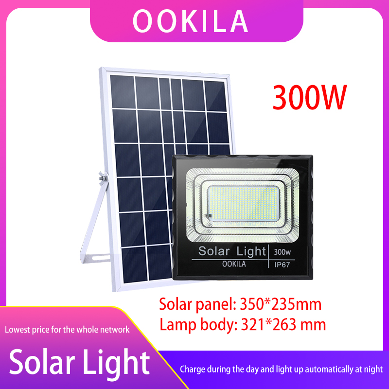 300W: Solar panel: 350*235mmThe lamp body: 321 * 263 mmBattery capacity: 25000mAh Lighting duration: 8-24 hours