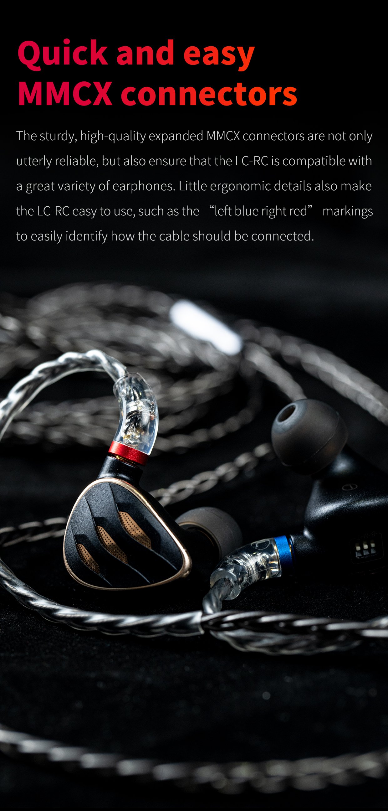 Be in trouble with keeping changing earphone cables of different types to fit different devices? The high-purity monocrystalline silver-plated copper earphone cable LC-RC with interchange audio plugs is here to help with adaptability with earphones of different audio plugs.