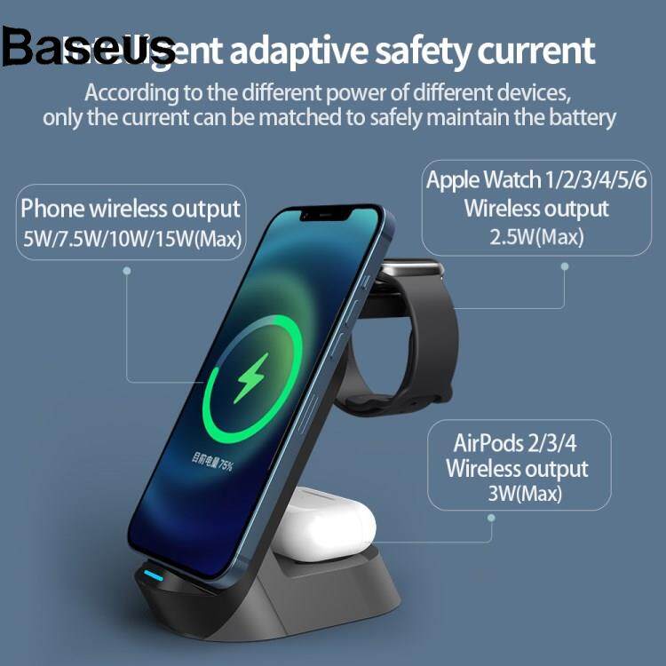 Baseus JJT-980 Desktop Charging Stand 3 in 1 Detachable Magnetic Wireless Charger for iPhone / Apple Watch / Earphones