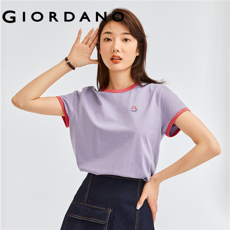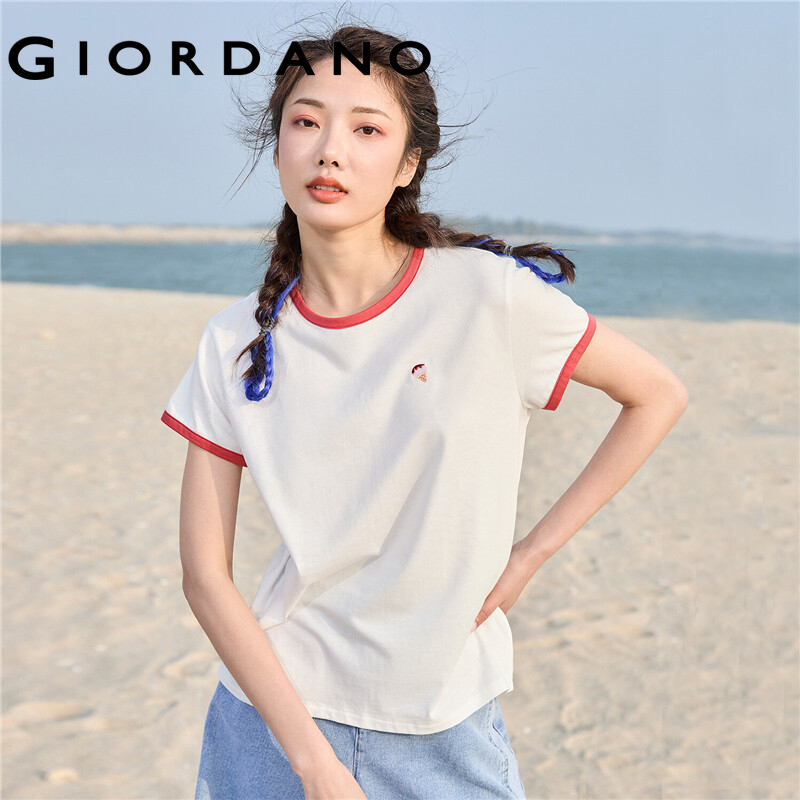 GIORDANO Women T-Shirts Exquisite Embroidery Casual T-Shirts 100% Cotton Classic Crewneck Short Sleeve Summer T-Shirts 05322395