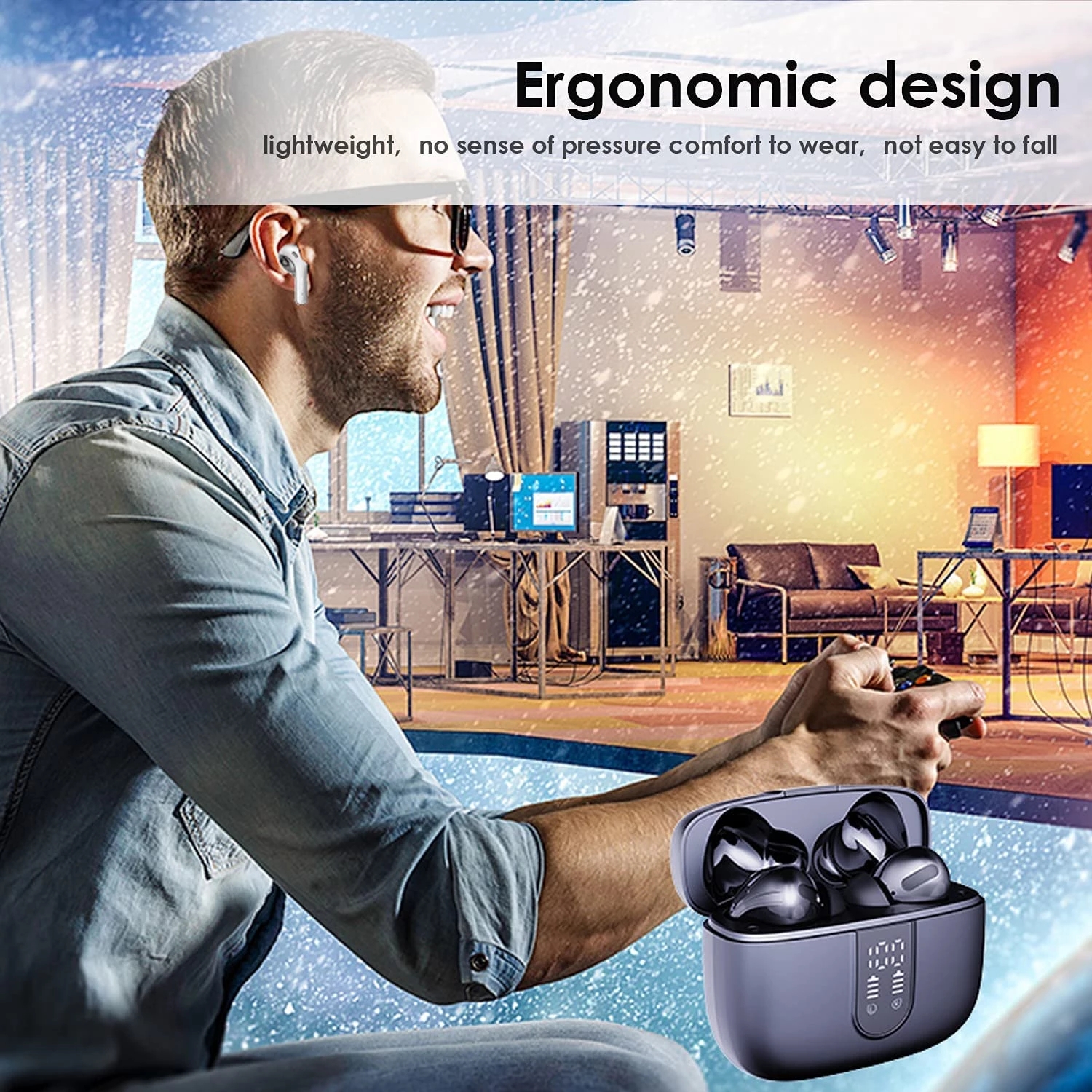 【2022 NEW】COTIN X08 Bluetooth Headphones True Wireless Earbuds 60H Playback LED Power Display Earphones with Wireless Charging Case IPX5 Waterproof in-Ear Earbuds with Mic for TV Smart Phone Computer