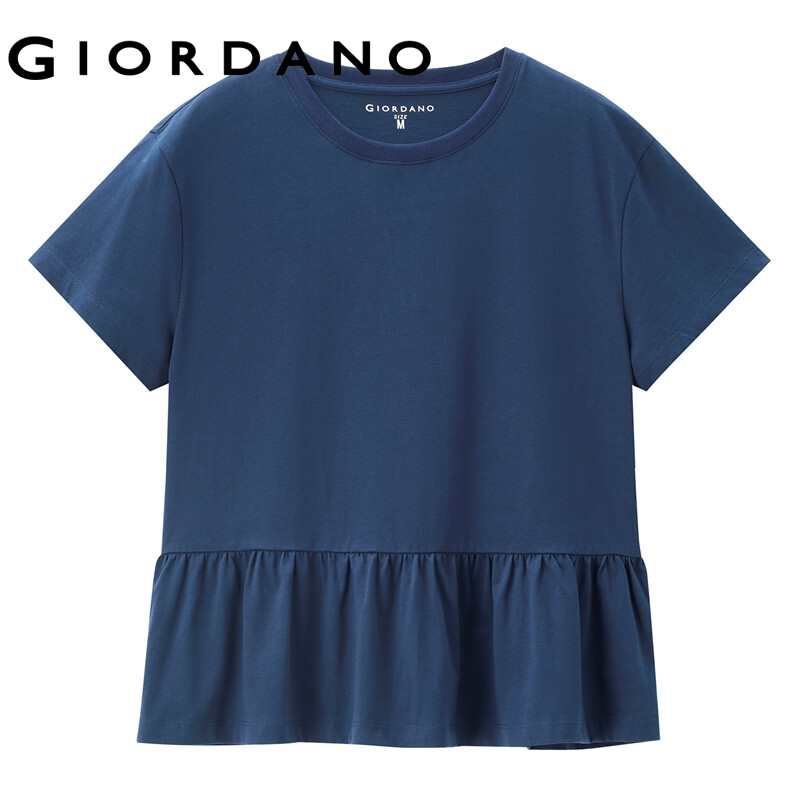 GIORDANO Women T-Shirts Drop Shoulder Ruffle Hem 100% Cotton Casual T-Shirts Loose Summer Simple Short Sleeve Basic Tee 13322212