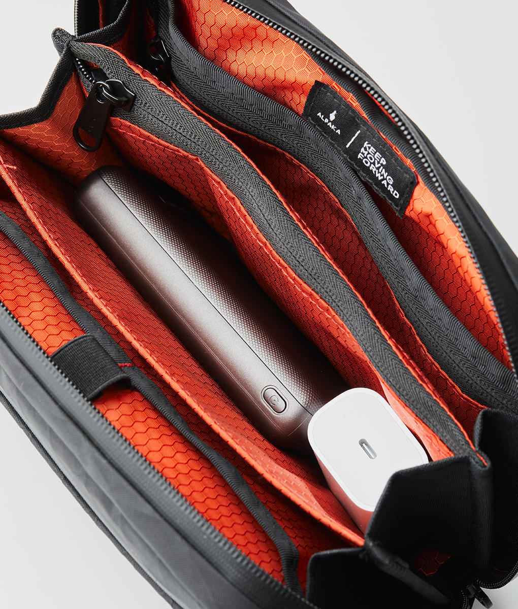 - Compartments are lined with Ripstop Nylon in Blood Orange