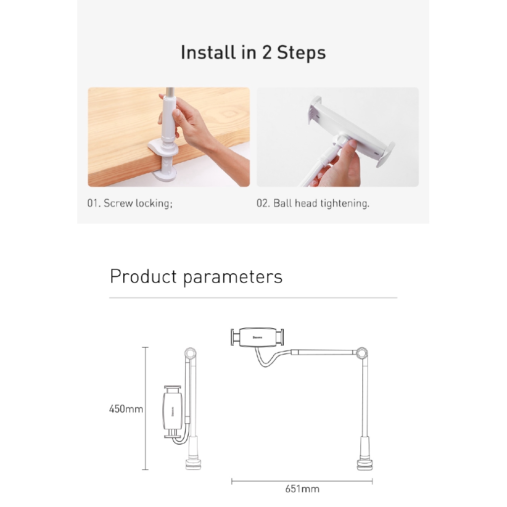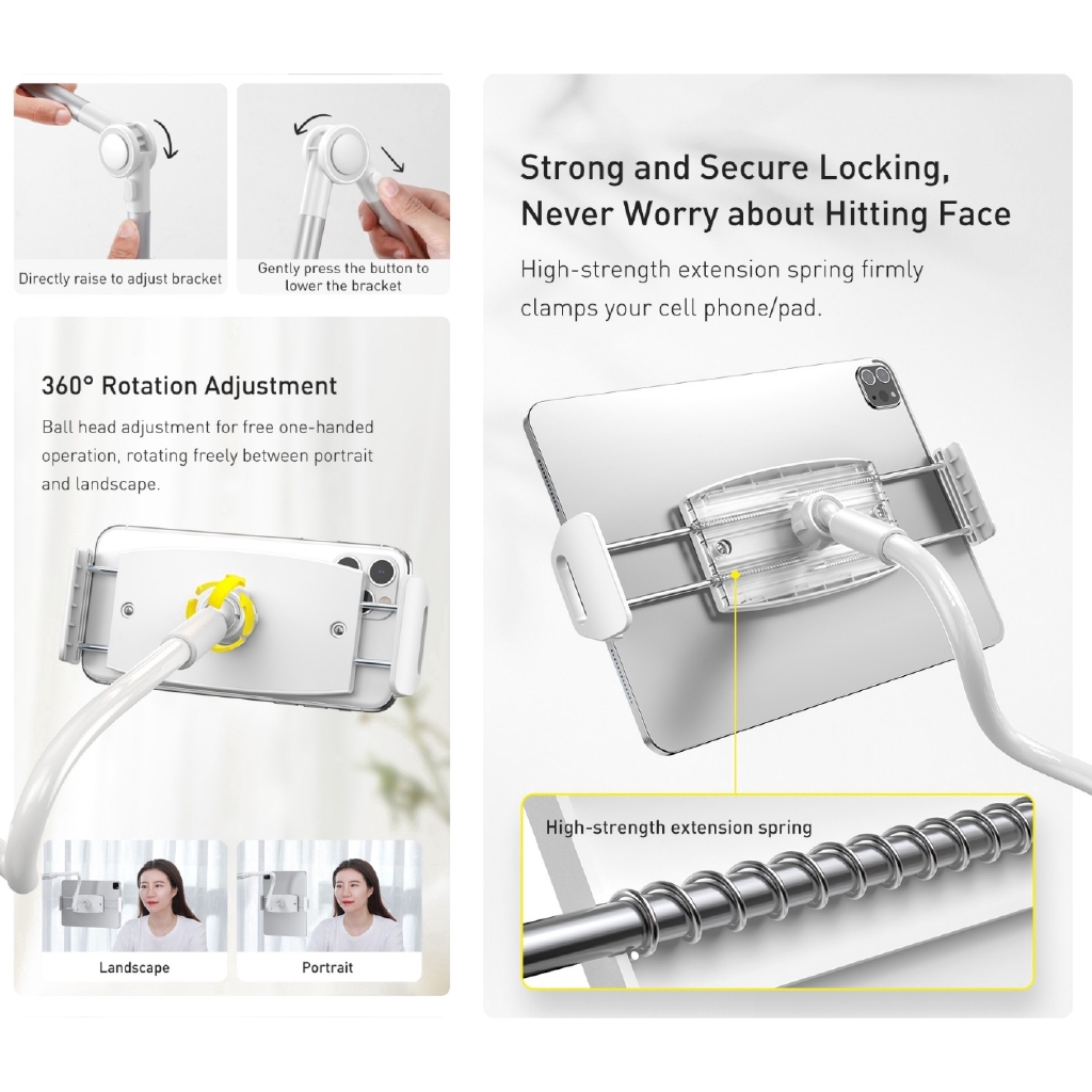 Baseus 4.7-12.9 inch Otaku Life Rotary Adjustment Lazy Holder Headbord Desk Long Arm Flexible Desktop Table Mobile Phone Clip Stand