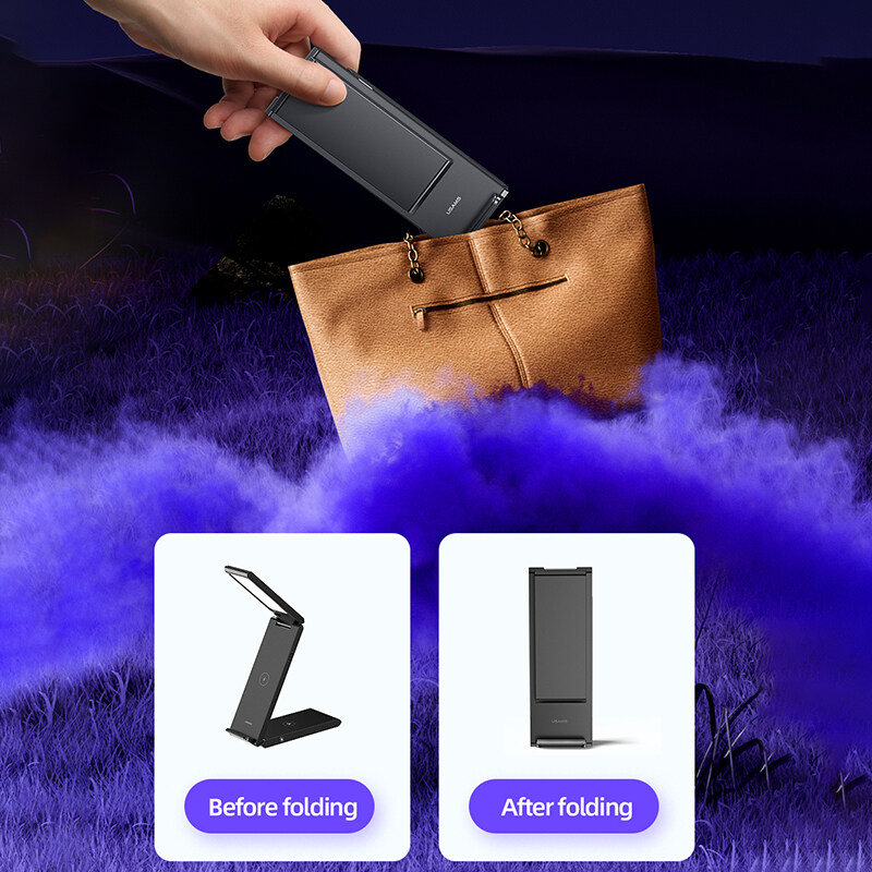 USAMS 4 in 1 Wireless Charging Stand 15W Fast Charger Folding Design With Table Lamp For Phone/i-Watch/Air-Pods Charging