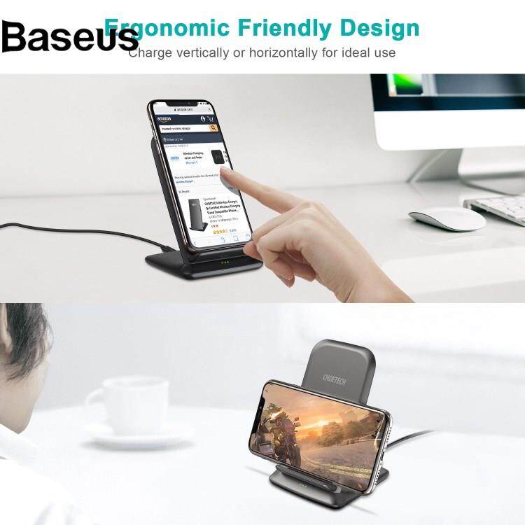 Baseus CHOETECH T555-S 10W Fast Charging Station Dock Double Coil Wireless Charger Stand
