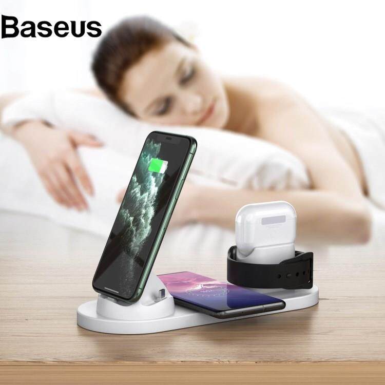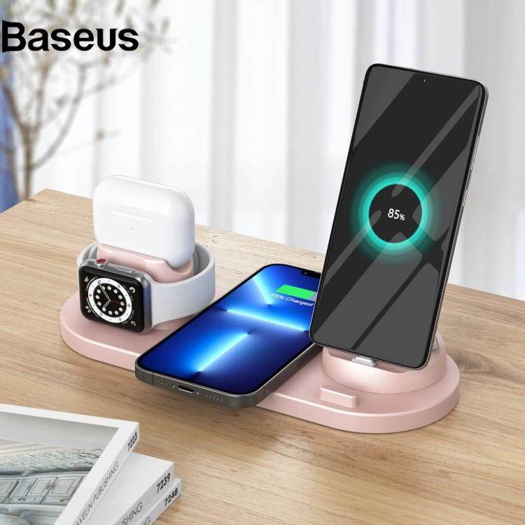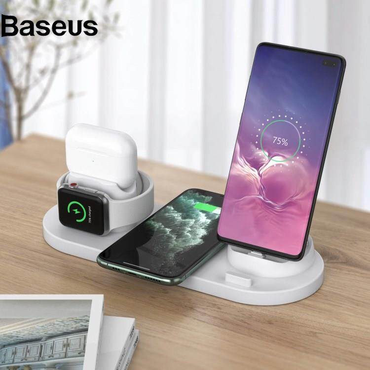 Baseus B-07C 6 in 1 15W Wireless Charger Stand Fast Charging Station for iPhone / Airpods Pro / iWatch