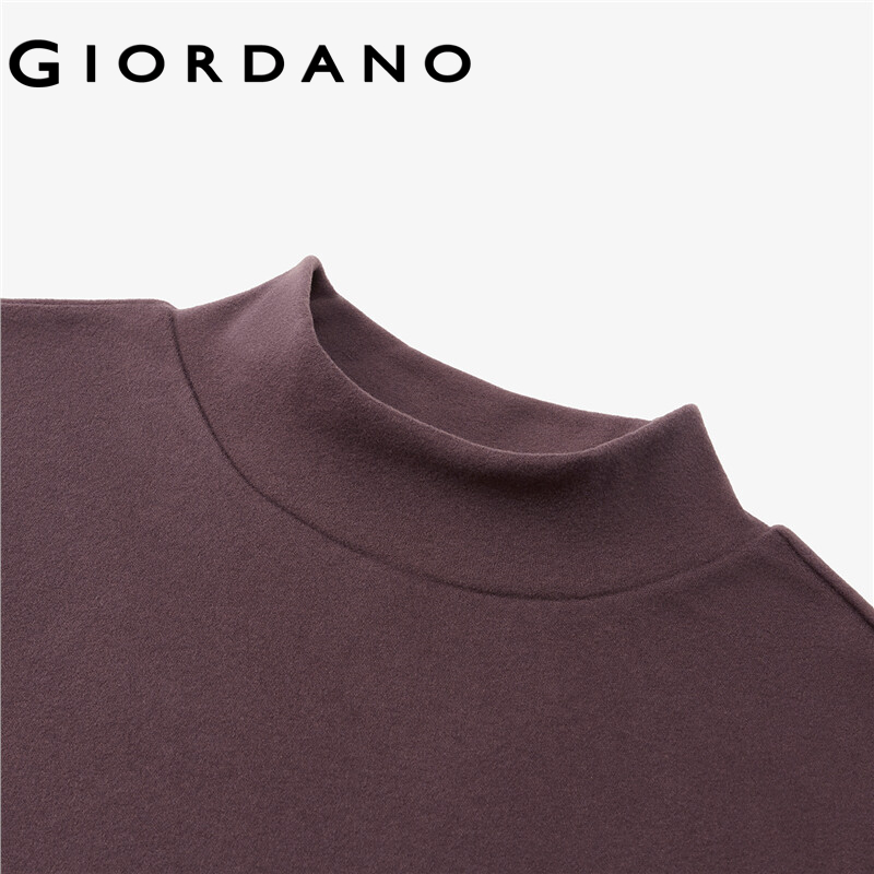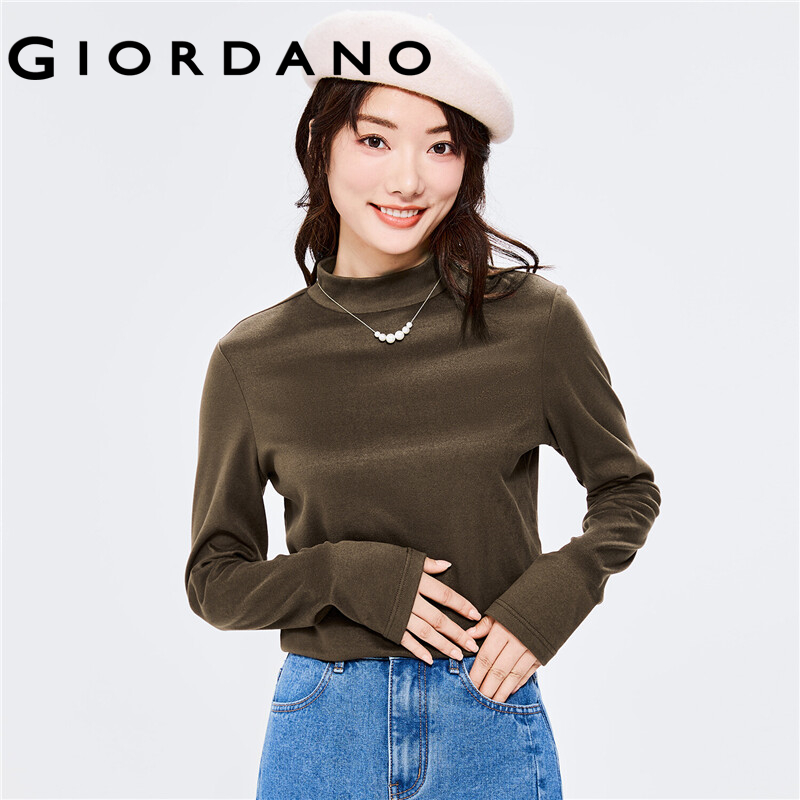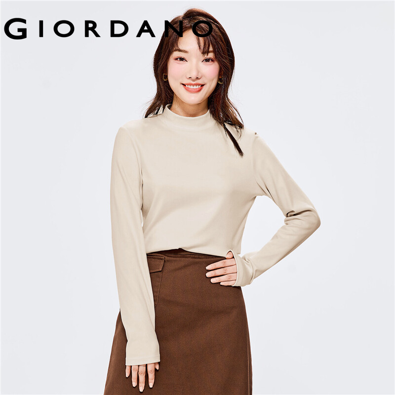 GIORDANO Women T-Shirts Mockneck Solid Color Long Sleeve Simple Basic Tee Stretchy Thermal Fleece Comfy Casual T-Shirts 05322822