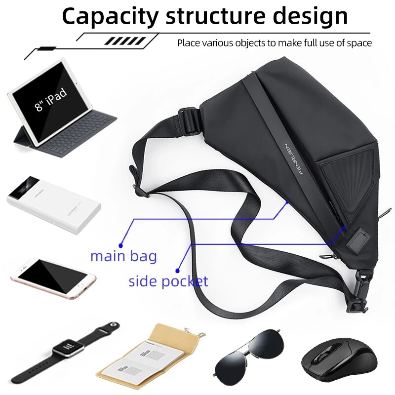 LOSELF- FENRUIEN Waterproof 8-inch Chest Bag Male Multifunction Small Storage Shoulder Bag Casual Men's Sling Messenger Bag Fashion Casual Crossbody Pouch Bags for Men