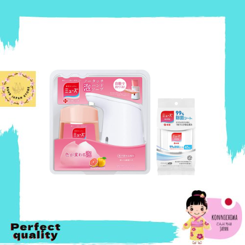 Muse Non-Touch Foam Hand Soap, Automatic Dispenser + Refill 8.5 fl oz (250 ml), Grapefruit Scent + Alcohol Disinfecting Muse Home 99% Disinfecting Sheets, 45 Sheets, 100% Authentic