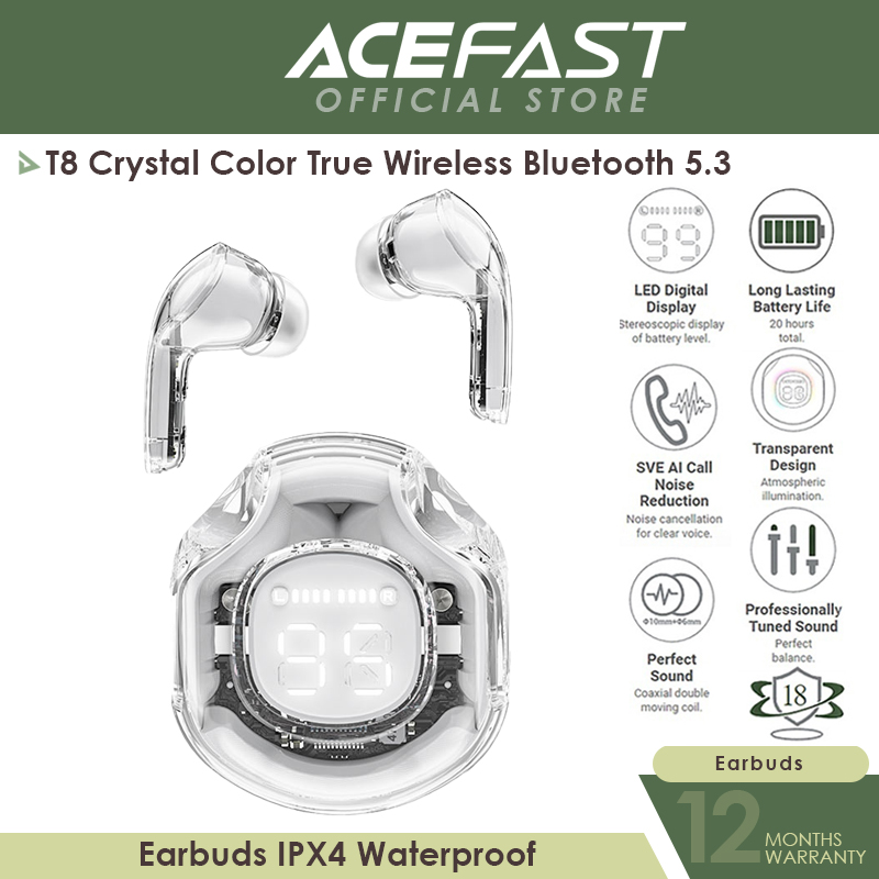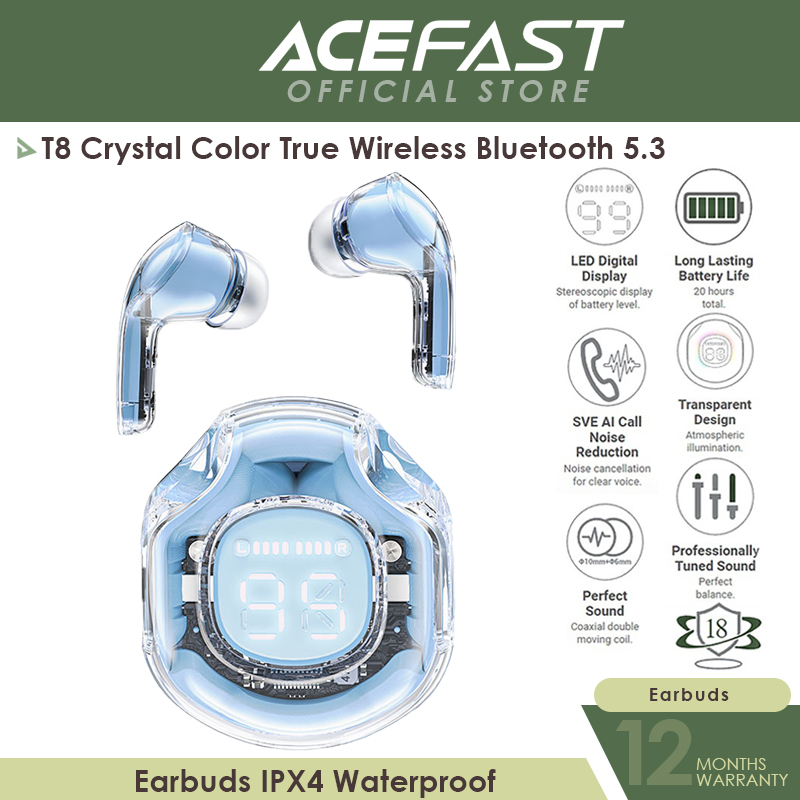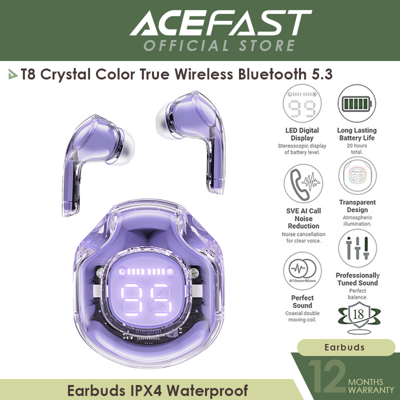 ACEFAST T8 Crystal Color True Wireless Bluetooth 5.3 Earbuds IPX4 Waterproof