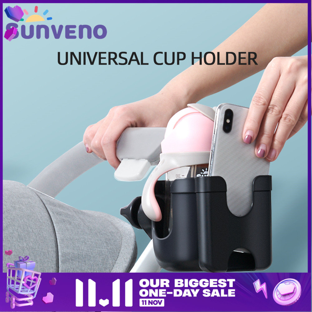 Sunveno Stroller Cup Holder Multifunctional Creative Stroller Accessories Baby Stroller/Pushchair Black Mobile Phone Holder